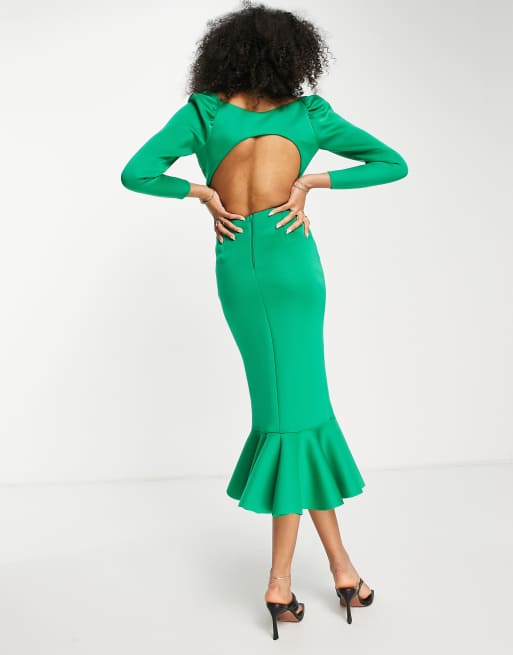 ASOS DESIGN Midi jurk met open rug en strook in felgroen
